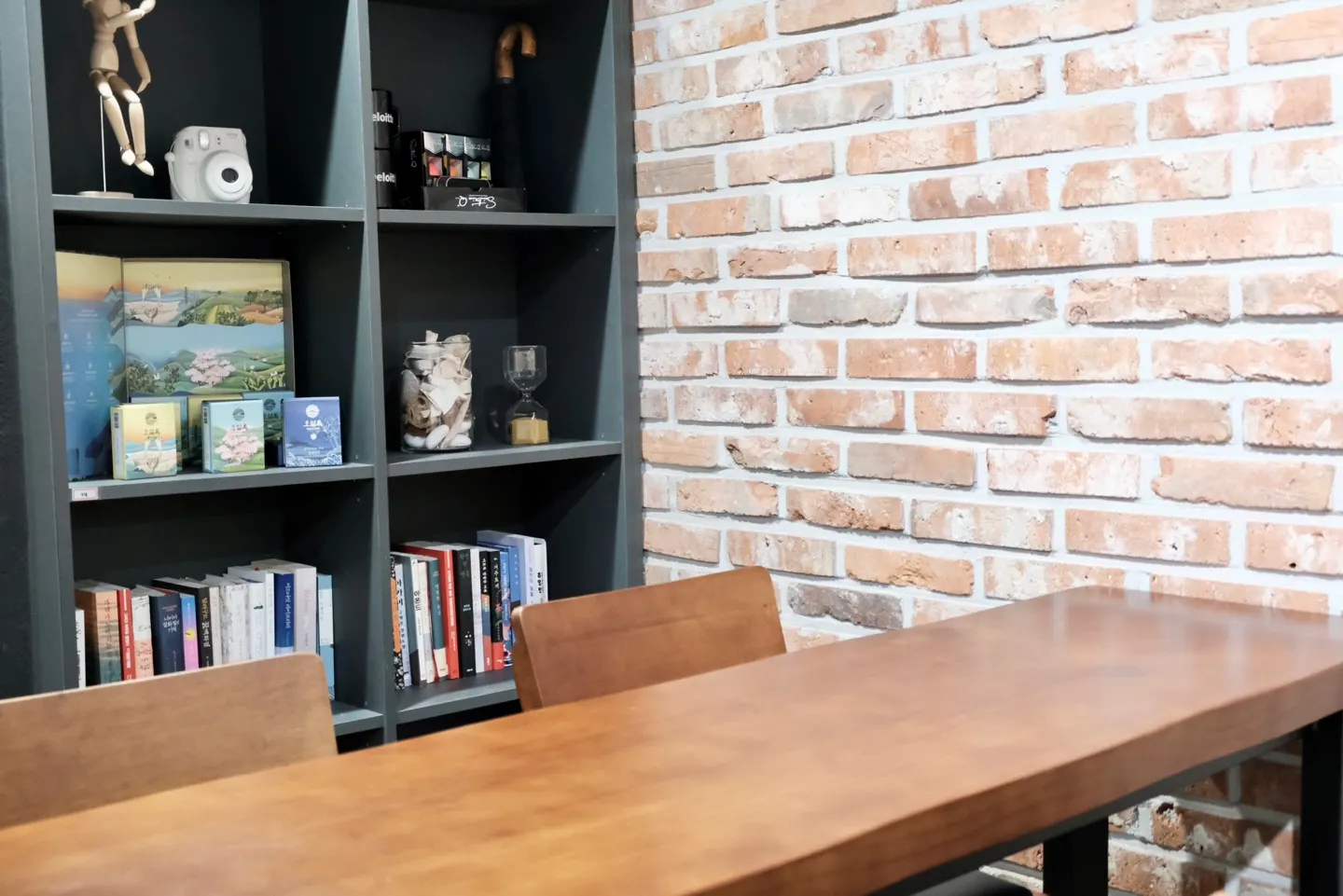 지하에는 커피머신 및 다과류, 미팅룸, 서고, 라운지, 그리고 탕비실이 있어요.